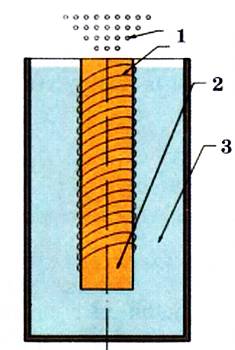 1 — сверхпроводящая обмотка; 2 — стержень из радиоактивного кобальта; 3 — охлаждающая среда.