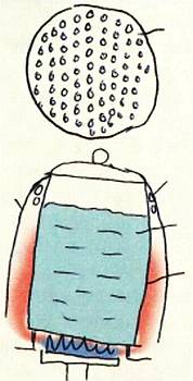 …на кипячение воды в кофейнике предлагает тот же В.И. Свиридов. Для этого, считает он, кофейник следует зачернить и поместить в кожух-экран из нержавеющей стали. Поверхность кожуха должна быть зеркально отполирована изнутри и снаружи. В верхней его части проделаны отверстия для выхода продуктов сгорания. Снизу экран дополняется специальной решеткой, надетой на горелку, которая должна сконцентрировать тепло продуктов сгорания на донышке кофейника.