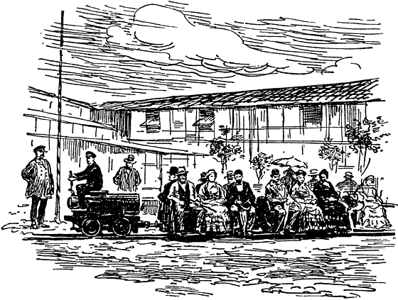 В 1879 году Сименс продемонстрировал на Берлинской промышленной выставке модель трамвайной линии, вернее — электровоза, тянувшего за собой три вагончика. Электродвигатель мощностью в 13 лошадиных сил, помещенный на четырехколесной тележке, работал непосредственно на движущую ось электровоза. Этот электрический поезд, рассчитанный на семьдесят восемь пассажиров, ходил по узкоколейному кругу длиной в триста метров, со скоростью около семи километров в час. Он пользовался большим успехом на выставке.