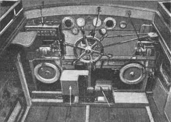 Катер Шово выполняет восемь команд: вперед, направо, налево, быстрее, медленнее, стоп, зажечь прожектор и еще одну команду, зависящую от специального назначения лодки. Перед капитаном катера, который находится где-либо на берегу или на другом корабле, или даже на аэроплане, помещается небольшая командная доска с восемью кнопками команды и девятой, дополнительной, кнопкой.