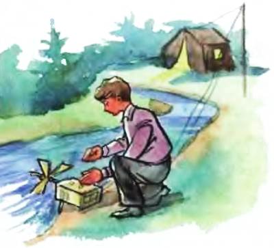 — Каждый начинающий турист знает, как незаменим в походе радиоприемник. Но вот у меня «сели» батарейки, а свежих не было, и я задумался, — пишет Дмитрий. — А нельзя ли использовать энергию речки?»