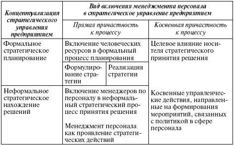 Представление о положении системы персонала в рамках стратегического управления – двухуровневой (прямой или косвенной) процессуальной причастности – приведено в табл. 3.6.