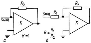 где В определяется как и раньше, а именно В = R1/(R1 + R2). Для предельного значения коэффициента усиления А при разомкнутой цепи обратной связи, G = — 1/В + 1 (т. е. G = — R2/ R1).