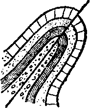 В глубине земной коры горные породы могли очень сильно изгибаться, разрываясь лишь незначительно; конечно, эти изгибы происходили очень медленно. Но когда сила давления была уже слишком большой, то складка разрывалась в том или другом месте и части её надвигались друг на друга, как это мы видели на рисунке 10.