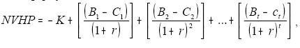где K – начальные капитальные вложения; Bt – выгоды от проекта в момент времени t; Ct – затраты по проекту в момент времени t.