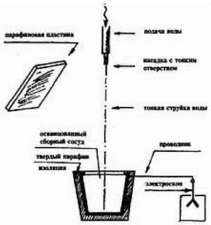 Демонстрировался в Вене, Лондоне, Кембридже, Оксфорде и Бирмингеме, Электроскоп реагировал, когда аккумулированный заряд отражался обратно по направлению к текущей струе воды при помощи парафиновой пластины. Эта реакция происходила даже тогда, когда тонкая струйка воды была длиной 20 метров