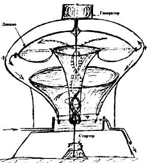 Рис. 1. Схема устройства Виктора Шаубергера «Эксперимент со струей воды» — 1951 год