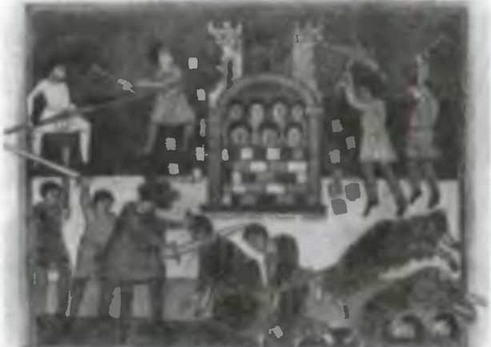 Разрушение города — иллюстрация одной из сцен Апокалипсиса. Миниатюра. XI в.