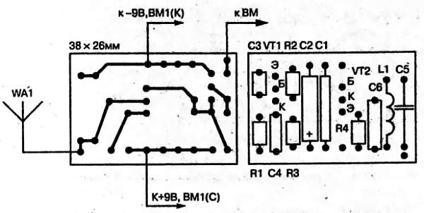 Рис. 13. Размещение элементов схемы радиомикрофона