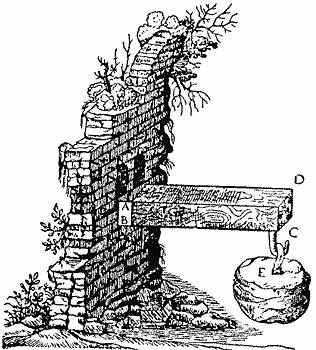 Рис. 12. Рисунок Галилея, иллюстрирующий испытания консольной балки.