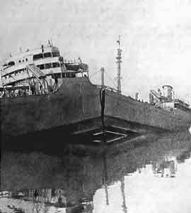 Рис. 15. Корабль "Скенектеди". Трещина началась у острого угла люка на палубе и "побежала" до самого киля