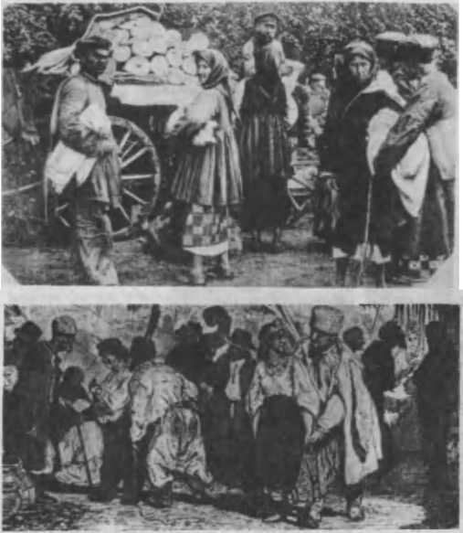 Ми не будемо спинятися на так званому набілі, цебто молочних стравах, та на стравах мішаних, а на рецептах їх приготування Й поготів, бо все це в подробицях можна знайти в книжках Арандаренка, Маркевича та Чу-бинського. Треба, однак, зазначити надзвичайно характеристичний факт щодо приготування коров’ячого масла. По цілій Україні масло б'ють, а тим часом у Великоросії, крім Фінляндії, його одтиплюють; так то, наприклад, п Петербурзі збите з вершків мисло відоме під назвою чухонського. Крім іого. дуже інтересна з етнографічного боку та обставина, то хліб, ця основна пожива маси українського населення, зовсім не однаковий на цілому просторі України; він дуже ріжноманітиий од того, які місцеві умови. Так на Чернигівщині, Полтавщині, Волині, Київщині та на півночі Катернносгав-щини вживають виключно житній хліб, а пшеничний вважають за ласощі І печуть його дуже рідкі* в особливо урочистих випадках. Навпаки, на півдні Катеринославщини, на Херсонщині, у Таврії та на Кубані їдять виключно білий пшеничний хліб. По деяких місцевостях Галичини, як, наприклад, у бойків, нема пі пшеничного, ні житнього хліба, а головну поживу становлять пляцки та юшка з вівсяної муки, що за голодних літ траплялось в давні часи Я и київській землі, коли, наприклад, року 1413 убогі люде споживали вівсяний хліб, а на Полтавщині, як свідчить Арандаренко, з ячниї га прися-ної муки. Понад Дністром, на Поділлю та в Бессарабії замісць хліба їдять кукурудзяну мамалигу, що під назвою кулеші становить головну поживу й гуцулів. Після хліба головним елементом поживи українського населення стала тепер картопля — печена та варена, з сіллю та олією чи з салом, хоч і не завше. Потім, в етнографії української страви треба ще зазначити, що на Україні, здасться, не дуже-то прищепились ті забобони, що панують в Великоросії та що походять із старої ортодоксії духовенства, яке заборе* няло споживати «удавленнну», заячину тощо. На Україні без жадного еумніву їдять задавлених у пастках перепелиць та куропатів (якщо не продають їх, хоч, правда, все-таки вважають, що треба дорізати випадково забиту чи задавлену живність, як-от курку тощо. Гак само вважають, що можна споживати ведмежину, зайців, раків, голубів,— всс те в деяких місцевостях Великоросії не відважуються їсти; вживають українці в страві також і кров, наприклад, у ковбасах.