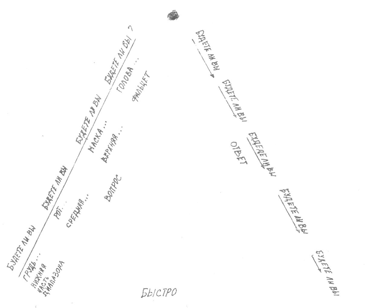 Каждый образец текста повторяется столько раз, сколько необходимо для того, чтобы заполнить весь голосовой диапазон при увеличивающейся скорости.