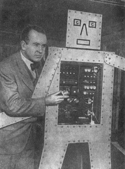 Слышащий робот (телевокс) и его изобретатель инженер Венсли.