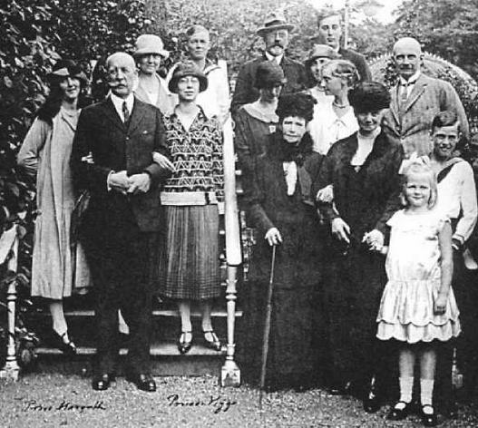 Императрица Мария Федоровна в Копенгагене среди своих родственников по возвращении из России. Рядом — сестра Тюра, в последнем ряду — брат Вальдемар (второй справа)
