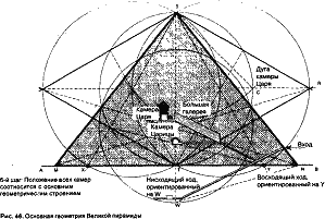Ключом являются местоположение и размеры Великой пирамиды, которые — как мы уже показали — находятся в выраженной целыми числами пропорции с размерами Земли. В качестве единицы измерения при сооружении Великой пирамиды использовался царский локоть. Каждая ее сторона имеет 440 царских локтей в длину.