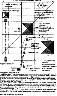 Конфигурация сетки из квадратов со стороной в 220 царских локтей, равной половине длины стороны пирамиды, при наложении на плато Гиза немедленно устанавливает положение пирамид Хафры и Менкаура, а также Сфинкса (рис. 48).