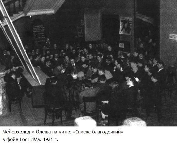 Для театра пьеса чрезвычайно интересна. До сих пор Олеша приходил в театр через литературу. Это первая его пьеса для театра. И в ней мы видим громадный рост драматурга. Театр надеется в работе над этим материалом достигнуть высшей качественной ступени. Наконец мы получаем настоящую драматургию, которая дает возможность действительно ставить вопрос об использовании классического наследия не в смысле перепева, переписывания классических произведений, а в смысле блестящего овладения наследием. Мы давно ждем такого драматурга, и теперь он явился. С таким драматургом мы и без классики сумеем создать блестящие произведения искусства. Тут говорили относительно «списков». Конечно, «списки» эти — преступлений и благодеяний — не даны, но они показаны действенно. В каждом персонаже блестящий и благодарный материал для актера. Мы, работники театра, можем сказать, что мы чрезвычайно удовлетворены, получив такой материал для работы. Мы можем сделать только одно: от имени всех работников театра приветствовать товарища Олешу.