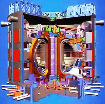 В Кадараше исходное сырье — водород — будет при помощи микроволн и электричества разогреваться до температуры 150 млн. градусов. При этом оно превращается в плазму, в которой происходят реакции синтеза — водород превращается в гелий — и выделяется энергия. Как показывают расчеты, таким образом можно получить в 10 млн. раз больше энергии, чем при сгорании угля, нефти или иного органического топлива, и в 100 раз больше, чем при расщеплении ядер урана.