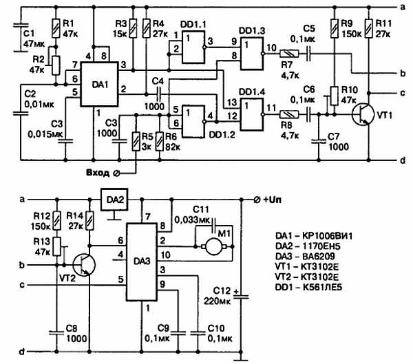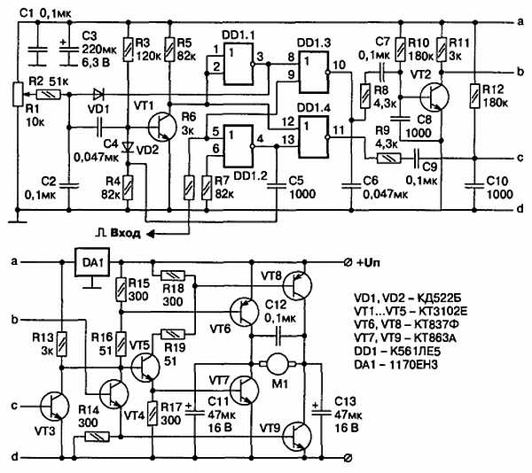 На рис. 7.6 приведен вариант схемы регулятора хода, реализованного в основном на транзисторах.