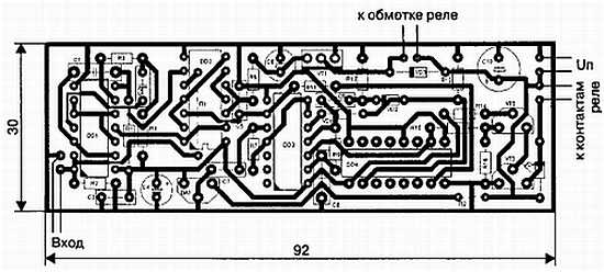 Печатная плата этого варианта приведена на рис. 7.28. Диод VD2 на плате отсутствует, поскольку для маломощных реле можно обойтись и без демпфирования.