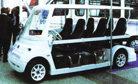 Один из немногих натурных экспонатов — электромобиль ЛЭТС-500, разработанный сотрудниками корпорации «Компомаш».