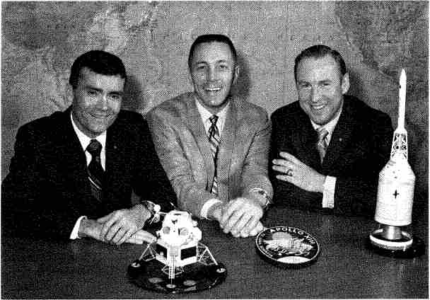 Рис. 6.65. Экипаж «Аполлона-13»: Фред Хейс, Джон Суиджерт и Джеймс Ловелл (слева направо).