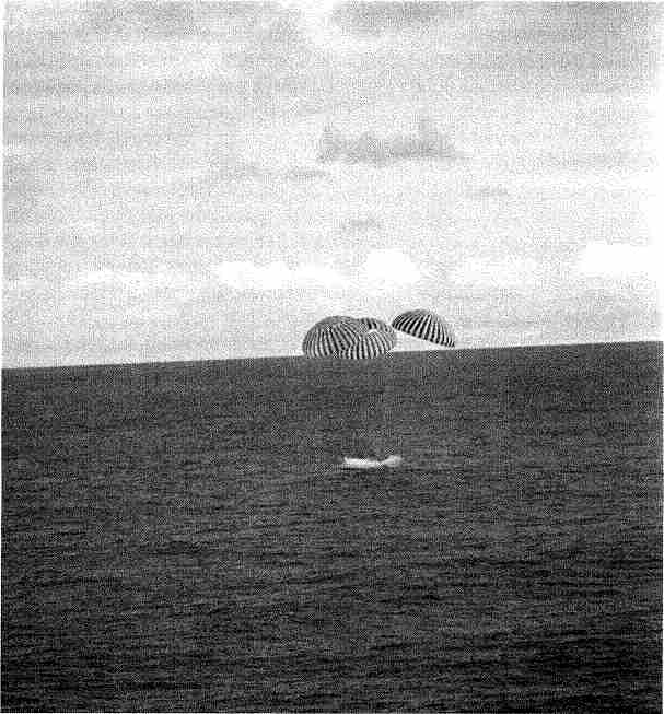 11:53. СМ входит в атмосферу: осталось «всего» две проблемы — теплозащитный экран и парашюты. Плазма окутала кабину, радиосигналы пропали на 194 секунды… «О’кей, Джо!» — вырвалось у Суиджерта, когда в иллюминаторы хлынуло голубое небо.