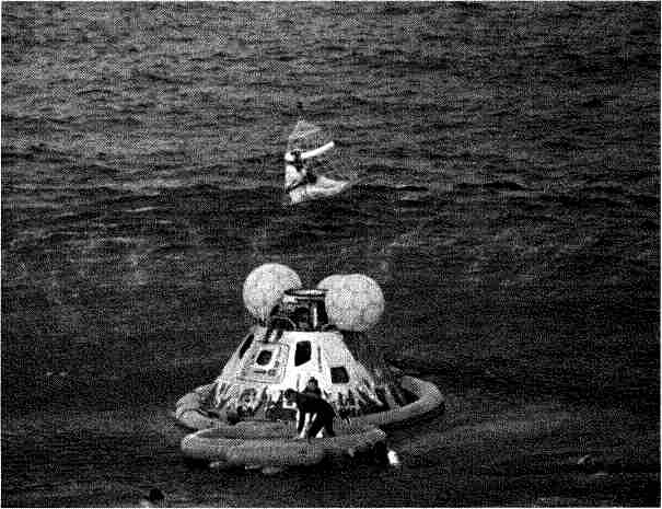 Рис. 6.73. Спасательная команда эвакуирует астронавтов на вертолете.