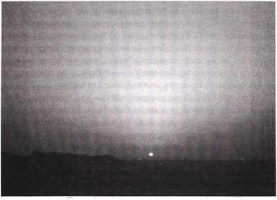 Рис. 33.2. Физические константы и законы природы таковы, что звезда типа Солнца светит около 10 млрд лет, позволяя жизни возникнуть и эволюционировать на подходящих планетах, обращающихся вокруг этой звезды. На этом фото Солнце предстает в необычном пейзаже: оно заходит за край марсианского кратера в 2005 году, когда это увидел марсоход «Спирит».