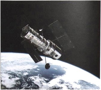 Рис. 3. Орбита космического телескопа «Хаббл» проходит на высоте 600 км, за пределами атмосферы Земли, полному он может получать более четкие изображения небесных объектов. чем наземные телескопы. С разрешения NASA.