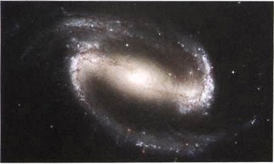 Рис. 20. У многих спиральных галактик сеть перемычка, бар, от концов которого тянутся спиральные рукава. Эта красивая спираль с баром называется NGC 1300. Впечатляет мысль о том. что вещество, которое мы видим в сиянии звезд и горячего газа. составляет лишь малую часть огромной массы невидимого и загадочного темного вещества. С разрешения NASA, ESA. & The Hubble Heritage Team STScl/AURA.