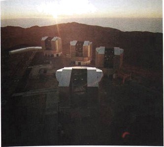 Рис. 1. Очень Большой Телескоп (VLT) Европейской южной обсерватории (ESO) в Чили, в настоящее время крупнейший составной наземный телескоп. Он состоит из четырех телескопов; зеркало каждого из них имеет диаметр 8,2 м. Эти инструменты могут работать совместно или по отдельности. С разрешения ESO.