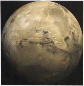 Рис. 6. Долины Маринер (Valles Marineris) на плато Фарсида (Марс). Этот огромный каньон — 200 км в ширину и 4 5000 км в длину — демонстрирует нам потрясающий результат древней геологической активности. С разрешения NASA.