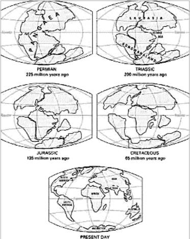 Заметили бы мы все эти движения без сверхточных приборов, установленных на спутниках? Конечно нет – ведь скорость движения литосферных плит с континентами составляет всего 1—10 см в год. Однако если эти маленькие сантиметры умножить на сотни тысяч и миллионы лет, то они превратятся в тысячи и десятки тысяч метров и километров.