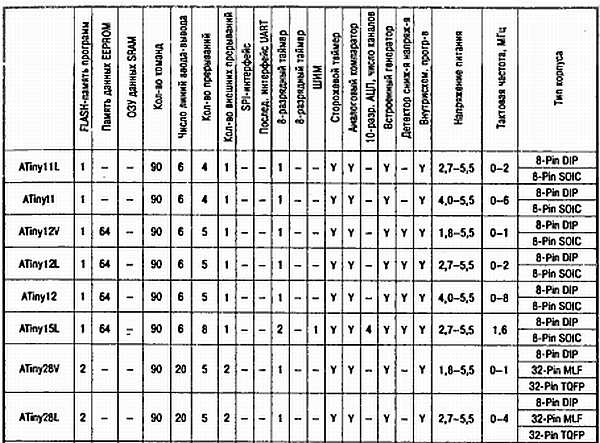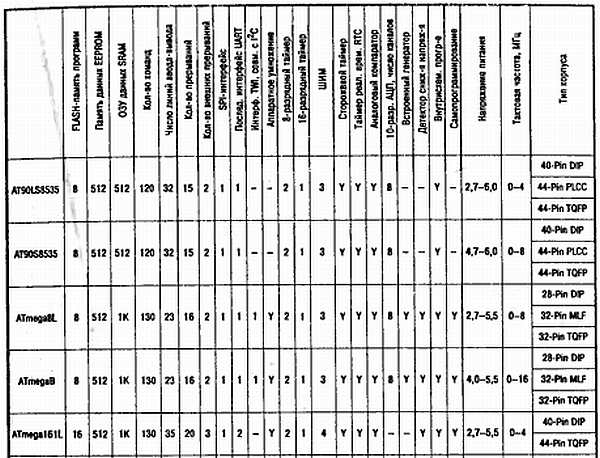 Рис. 1.2. Характеристики микроконтроллеров семейства AVR