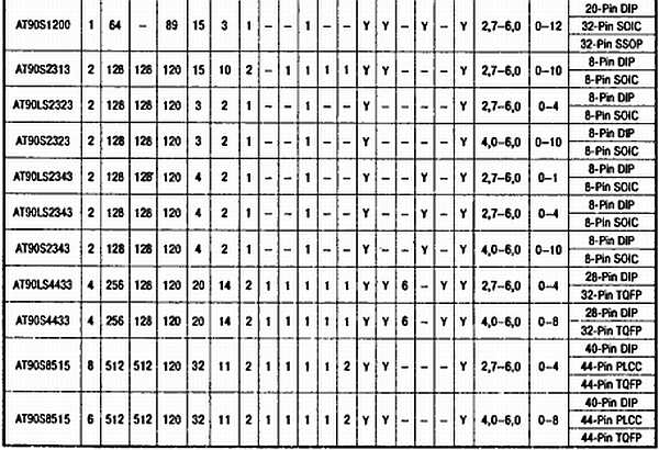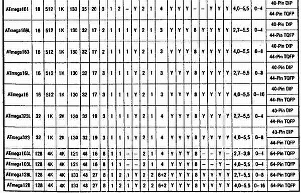 Рис. 1.3. Характеристики микроконтроллеров семейства AVR (продолжение)