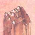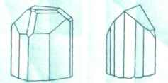 Двуглавые кристаллы среди топазов редки. Обычно кристалл увенчан одной головкой, но весьма характерной. Как и головка берилла, она формируется гранями пирамиды и плоской крышечкой — гранью базопинакоида. Но на этом сходство с бериллом кончается. Неповторимый облик кристаллам топаза придает не только несколько сплюснутая вертикальная ромбическая призма, но и своеобразно, «домиком», спадающие скаты — грани второй, наклонной ромбической призмы. Кристалл, увенчанный «домиком», смотрится иначе.