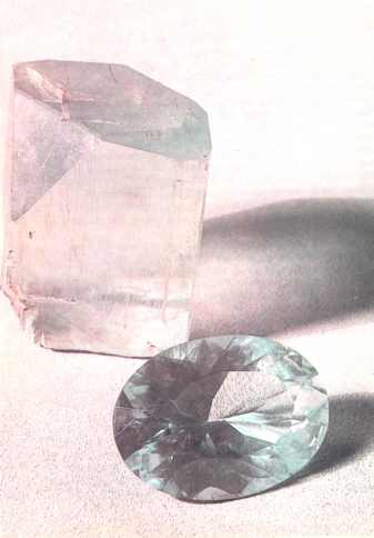 Но окраска всех топазов, особенно желтых и золотисто-розовых, имеет один непоправимый изъян. Причиной ее является не просто наличие микропримесей (железа, хрома, ванадия), а дефекты кристаллической структуры, вызываемые присутствием этих ионов в решетке. А потому, как и у всех минералов, у которых причина цвета кроется в нарушении идеальной симметрии решетки, окраски топазов неуйстойчивы. Энергия солнечных лучей, восполняя недостатки решетки, обесцвечивает кристаллы. Поэтому топазы, найденные на поверхности земли, обычно бесцветны. Впрочем, и среди них есть свои уникумы. Таков знаменитый топаз Браганца в 1680 каратов. Найденный в россыпях Бразилии в 1740 г., топаз был принят за алмаз и попал в португальскую корону.