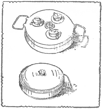 Приходят бойцы на склад. Выдали им широкие алюминиевые кастрюли, словно сковородки с крышками.