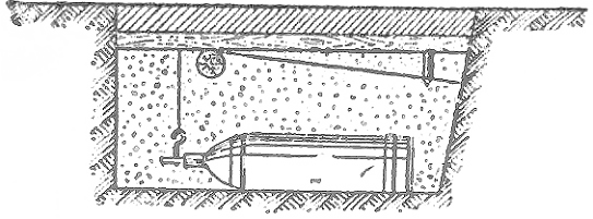 Роют ямы, на дно кладут заряды побольше. Вставляют взрыватели со шкурками. Поперек ямы кладут палки, поверх палок — доски, как в детских качелях, а к концам досок — шнурки. Ступит танк на доску, перевесит конец доски-качелей, выдернется за шнурок засов, произойдет взрыв.