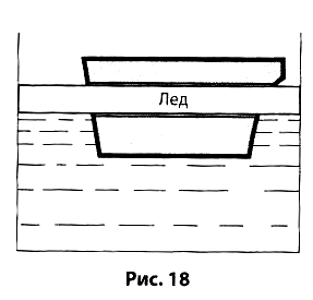 — Я снова сделаю вырез… Опять упрется?. Ну, тогда сделаем сквозной вырез: пусть лед спереди входит, а сзади выходит. Теперь рисунок выглядел так (рис. 18).