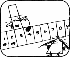 Мистер Ярмар с усмешкой ставит доллар на 4. Дама замечает, что если он следующим ходом поставит доллар на 5, то выиграет, и отрезает ему этот путь к выигрышу.