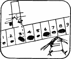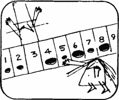 Посмотрим, как играют в 15. Первый ход — дама ставит цент на 7. Поскольку цифра 7 накрыта, ставить на нее в дальнейшем нельзя; ни доллары, ни центы. То же можно сказать и обо всех остальных цифрах: ни одну из них нельзя накрывать монетами дважды, будь то центы или доллары.