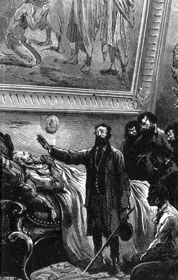 У постели умирающего капитана Немо. Гравюра XIX в.