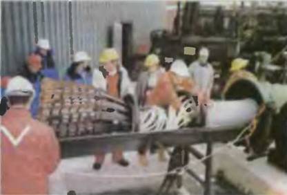 1998 год. Московская область, г. Луховицы, «Диаскан». Загрузка диагностического снаряда в приемную камеру нефтепровода