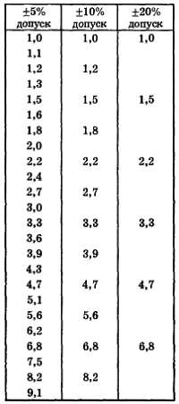 Рис. 4–4. Стандартные номиналы резисторов (исключая множитель).