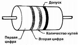 2. Что означают четыре полосы на резисторе из углеродной композиции?