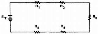 Последовательная цепь содержит два или более, соединенных последовательно, резисторов, через которые протекает один общий ток. Ток электронов течет от отрицательного вывода источника тока через каждый резистор к положительному выводу источника тока. Если для протекания тока между двумя точками цепи существует только один путь, то цепь является последовательной.