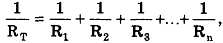 1/RT = 1/R1 + 1/R2 + 1/R3 +… + 1/Rn.